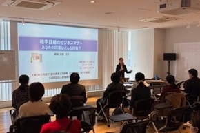 午前中には、キャリアコンサルタント・ビジネスインストラクターの大橋紀子さんを講師にお迎えし、「相手目線のビジネスマナー、あなたの印象はどんな印象?」と題した講義を行いました。参加者の皆さんは、相手の立場に立って考えることの大切さや、第一印象の重要性について学びました。