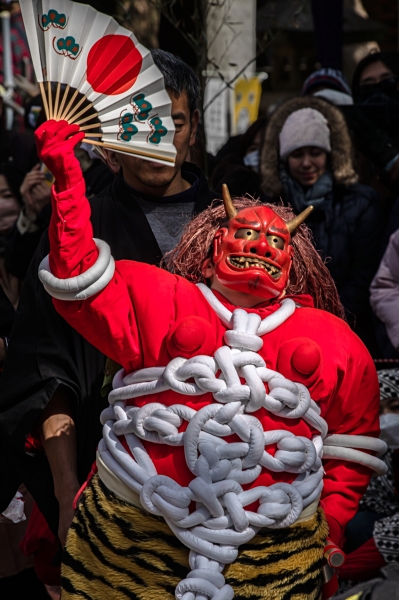 鬼まつりです。ケーブルテレビのカメラマンが小鬼にカメラを向けたところ、小鬼はしっかりポーズを決めている感じでしたので、そこを狙ってみました。