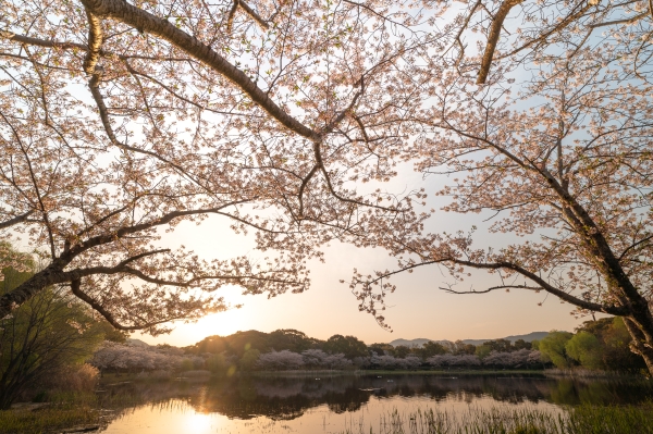 雲の隙間から降り注ぐ光芒が、幸公園の幸福橋を幻想的に照らし出していました。この橋を渡る人々に幸せが降ることを願ってシャッターを切りました。