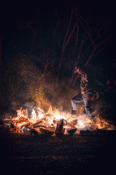 伊良湖神社で年末年始にかけて行われる「ごぜんだらまつり」の火渡り。