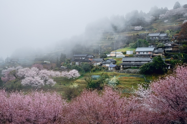 桜が見頃であることと雨上がりの早朝という条件が揃わないと見られない特別な桜です。