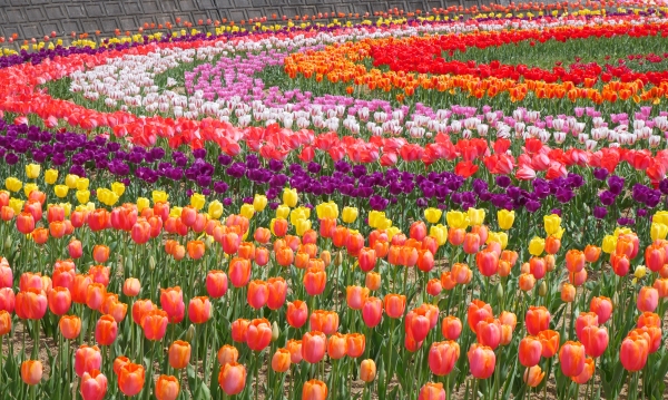 サンテパルクは季節の花がきれいに植えられて来園者を楽しませてくれます。一番の圧巻は春のチューリップ。円形の花壇に色とりどりのチューリップが植えられてまるで万華鏡のようでした。