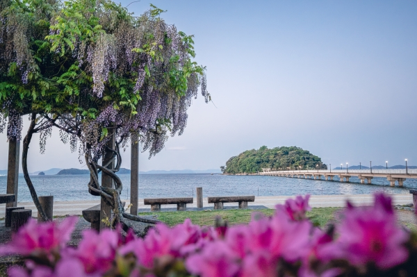 竹島の春といえば潮干狩りとツツジが有名ですが、実はひっそりと藤も咲いているんです。