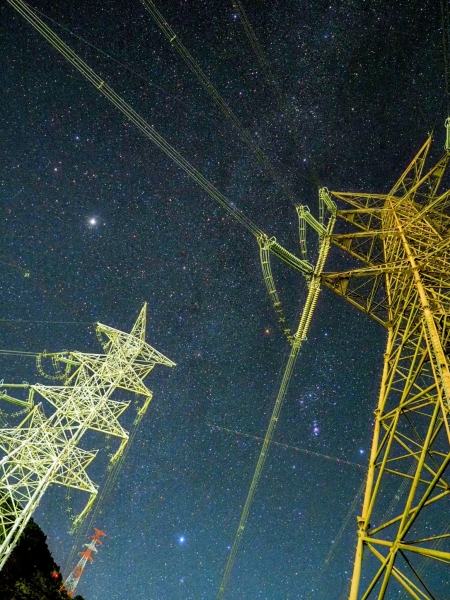 変電所がある山間地ならではの風景と星空の聖地のコラボ。