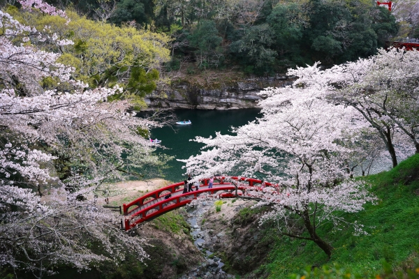 桜の景勝地としても有名な桜淵公園を初めて訪れたのですが、ちょうど満開の桜と赤い橋のコラボがとても印象的でした