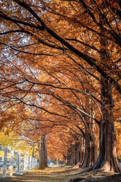 秋になるとメタセコイアが見頃を迎える高師緑地公園。