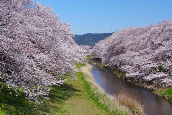 桜の咲く吉田城に美しく舞う二羽の白鷺を捉えてみました。