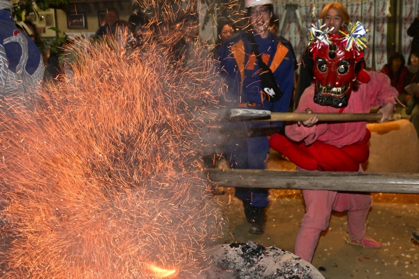 榊鬼がマサカリで火をはねる瞬間を撮影ました。